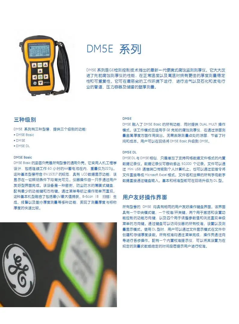 DM5E超聲波厚度測量系列分別包括三種型號: